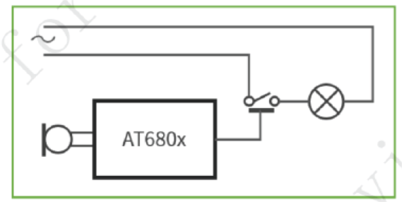AT6811在智能聲控?zé)艟邎?chǎng)景的工作示意圖