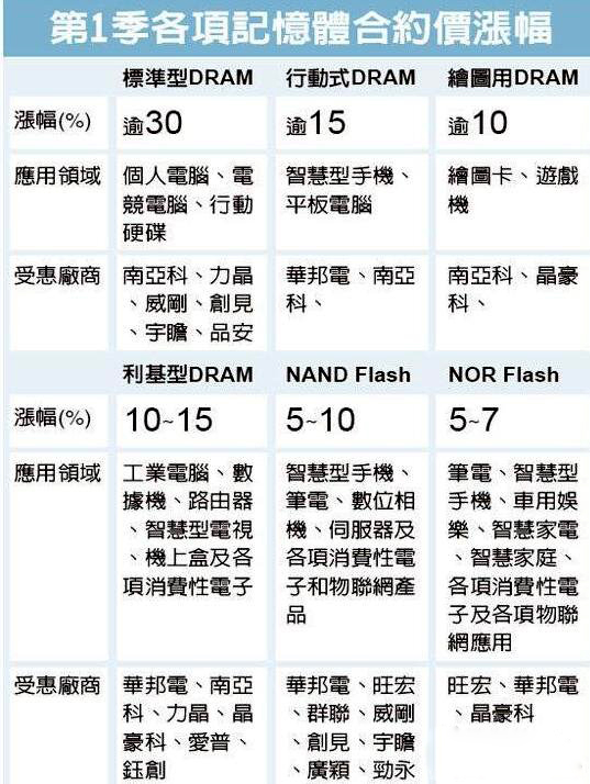 今年存儲芯片缺貨效應(yīng)持續(xù)擴(kuò)大,繼DRAM、儲存型快閃存儲(NAND Flash)在淡季飆出歷年最大漲幅后,編碼型快閃存儲(NOR Flash)也在睽違四年多來初次提價(jià),第一季度調(diào)漲5~7%不等,下季漲幅更大,估計(jì)漲幅逾10%?!?br />