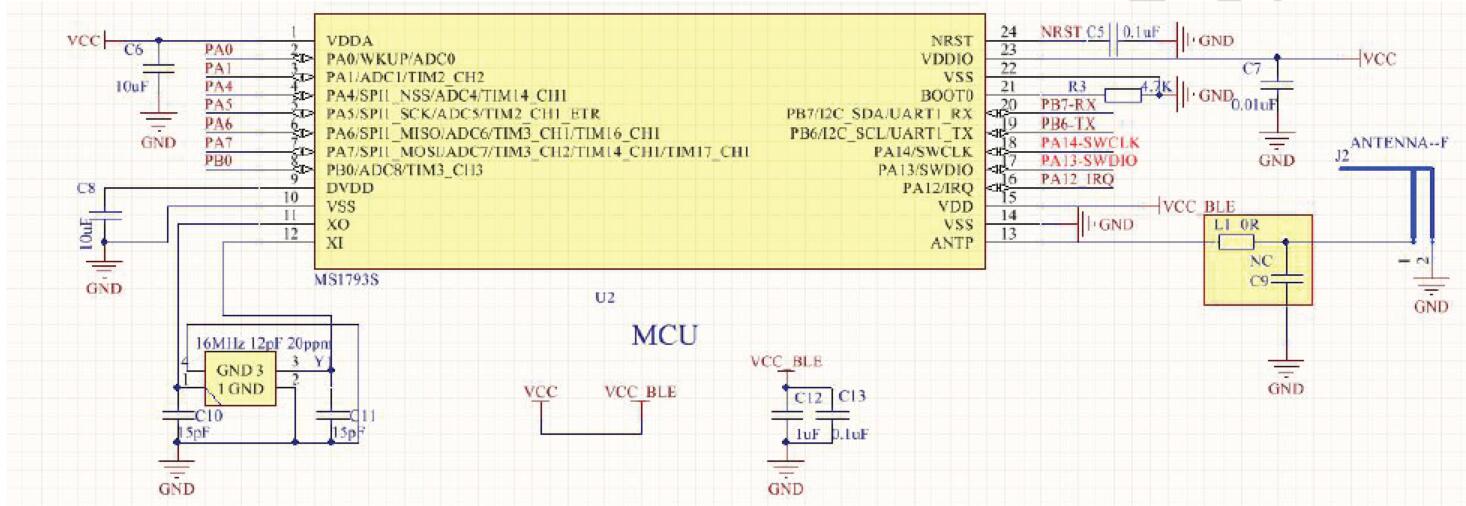 藍(lán)牙芯片,射頻采用2.4GHz ISM 頻段的頻率,2MHz 信道間隔,符合藍(lán)牙規(guī)范。MS1793S使用高性能的ARM®Cortex®-M0 為內(nèi)核的32 位MCU,它的工作頻率最高可達(dá)48MHz,內(nèi)置高速存儲器,豐富的增強(qiáng)型I/O 端口和外設(shè)連接到AHB 和APB 總線。MS1793S工作電壓為2.0V ~ 3.6V,工作溫度范圍包含-40℃~ +85℃常規(guī)型。多種省電工作模式適合低功耗應(yīng)用的要求。