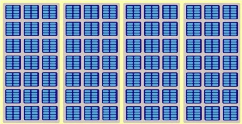 閃存陣列的簡(jiǎn)化圖。黃色框突出顯示die,淺灰色為plane,深藍(lán)色為塊,淺藍(lán)色框則為page。該圖僅用于可視化層次結(jié)構(gòu),而不能按比例繪制。(HyperstoneYoutube頻道有更加詳細(xì)說(shuō)明)