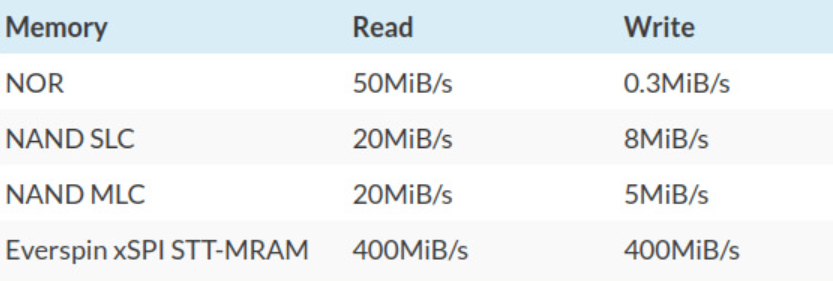 xSPI MRAM的主要亮點是400MB/s的讀寫速度,因為這個速度是NOR或NAND等閃存設(shè)備的數(shù)倍,在寫入方面甚至更高。該產(chǎn)品的其他好處,比如:在編程之前無需擦除、高效寫入(比NAND 低10倍,比NOR低200倍),以及可以兼容舊軟件的NOR閃存模式。