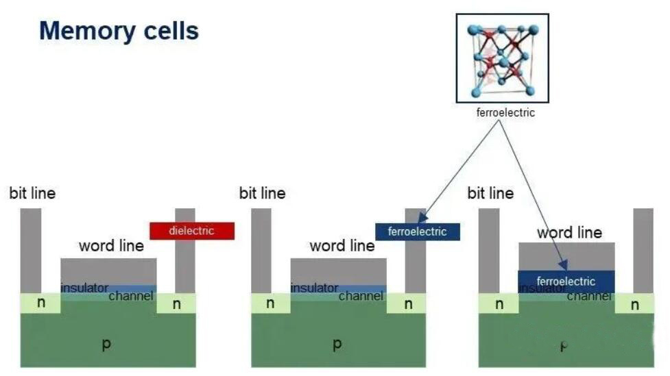 鐵電存儲器稱FRAM或FeRAM,F(xiàn)RAM采用鐵電晶體材料作為存儲介質(zhì),利用鐵電晶體材料電壓與電流關(guān)系具有特征滯后回路的特點(diǎn)來實(shí)現(xiàn)信息存儲。
