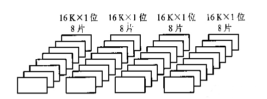 分析:64Kx8位,說明該存儲器是以8位構(gòu)成一個字,因此,每讀出一個字,需要選中8片16kx1位的存儲芯片,而一片能表示16k,因此一共需要64/16=4片,根據(jù)組合的原理,一共需要4x8=32片。