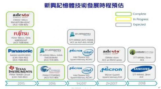 根據(jù)研究機(jī)構(gòu)Tech Insights估計(jì),包含F(xiàn)RAM、STT-MRAM、3D Xpoint 、CBRAM等新世代內(nèi)存,都已陸續(xù)進(jìn)入小量生產(chǎn)階段。 不過(guò),這些新興內(nèi)存技術(shù)中,除了少數(shù)存儲(chǔ)芯片例外,要發(fā)展到能跟NAND Flash、DRAM不相上下的程度,恐怕還需要很長(zhǎng)的一段時(shí)間,因?yàn)镈RAM與NAND Flash已具備極為龐大的經(jīng)濟(jì)規(guī)模,即便新興內(nèi)存技術(shù)在性能方面明顯優(yōu)于現(xiàn)有內(nèi)存,在供貨穩(wěn)定度、成本方面也未必能與現(xiàn)有內(nèi)存技術(shù)相抗衡。