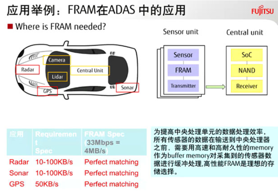 FRAM低功耗的特點能發(fā)揮優(yōu)勢;另一方面,為了確保足夠的安全性,胎壓數(shù)據(jù)必須頻繁地寫入與記錄,按一秒鐘寫入一次計算,使用10年則累計寫入3.2億次。而FRAM的高讀寫耐久性使之支持寫入次數(shù)達10萬億次,性能遠高于價格親民的EEPROM,成為安全控制系統(tǒng)的非易失性存儲器首選。