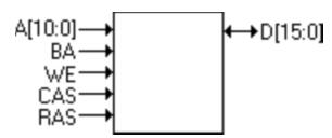 地址和數(shù)據(jù)總線仍然存在,但是地址總線只有11位(用于提供要打開(kāi)的行,然后提供列地址)。BA引腳指定了存儲(chǔ)區(qū)(由于在我們的示例中只有2個(gè)存儲(chǔ)區(qū),因此我們僅需要一個(gè)引腳)。WE,CAS和RAS一起用作命令引腳,因此我們可以向SDRAM發(fā)送8個(gè)不同的命令(命令包括“打開(kāi)行”,“讀取”,“寫(xiě)入”和“關(guān)閉行”)。使用了其他一些引腳(但未在圖片上顯示),例如時(shí)鐘,片選,字節(jié)使能...